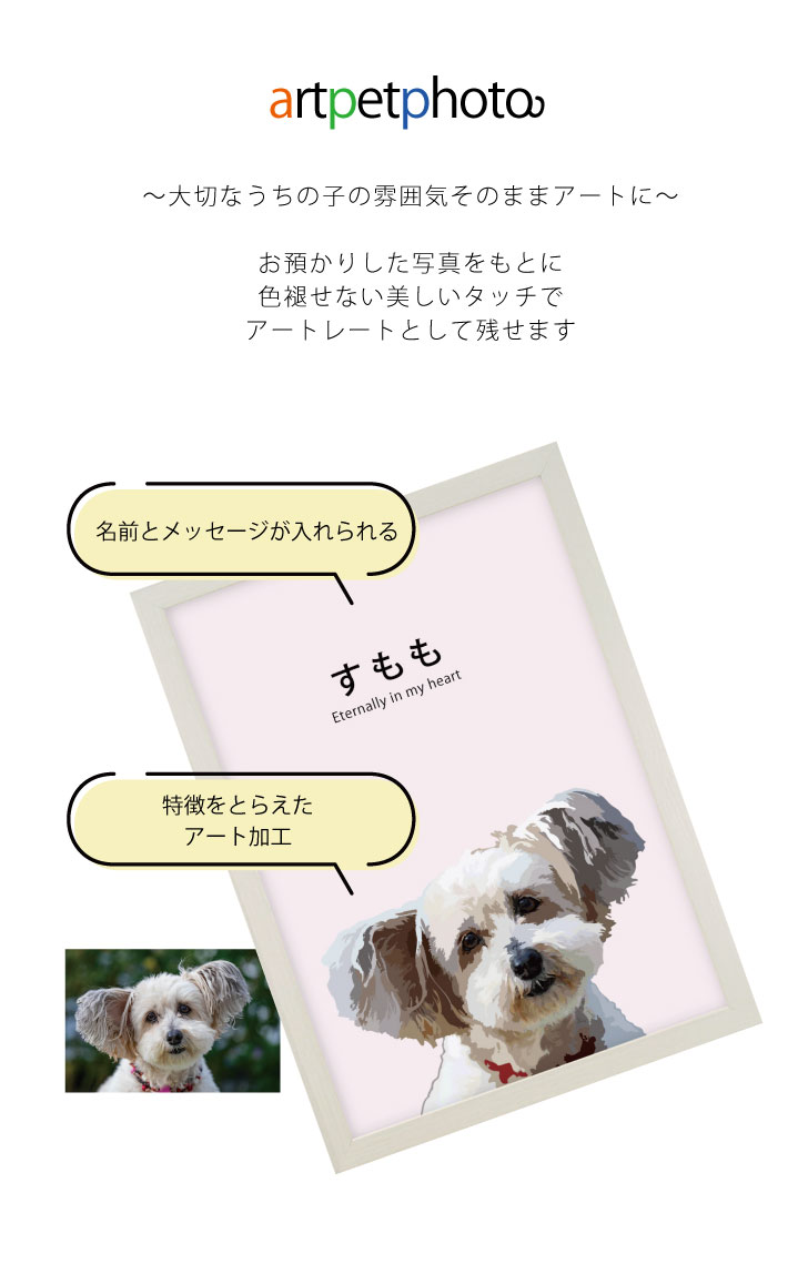 クーポン配布中 フォト ペットの写真をアート加工 思い出の1枚に メモリアルペット ペットグッズ ペット アート フォトフレーム メッセージ 写真 犬用品 インテリア セット アートレート 思い出 加工 おしゃれ インテリア アートフレーム メモリアル Mo U Ra